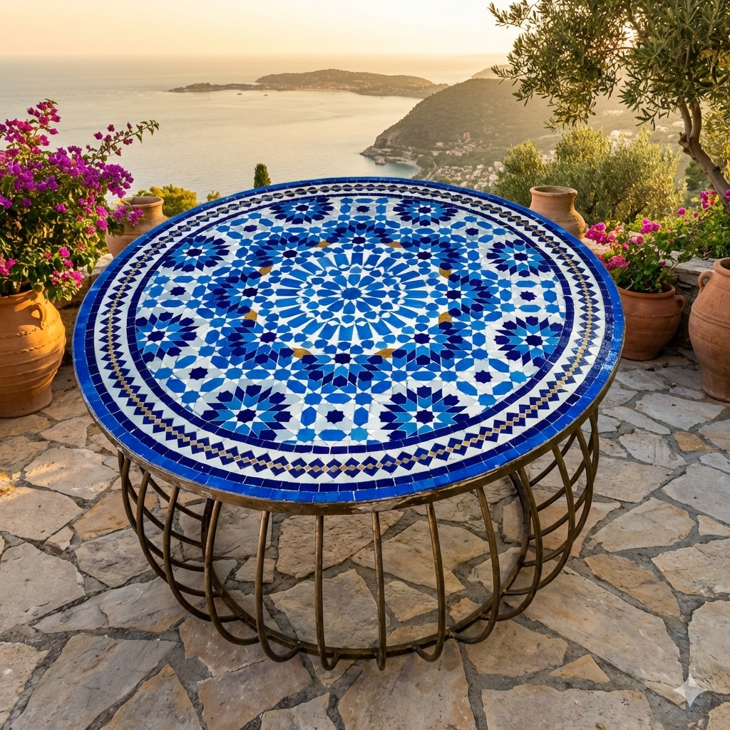 Table Ronde en Mosaïque Zellige